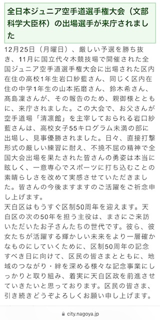 昨年末に天白区長へ行なわせて頂いた、