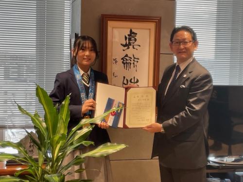 中京大学理事長へワールドカップ優勝の報告を行ない、
