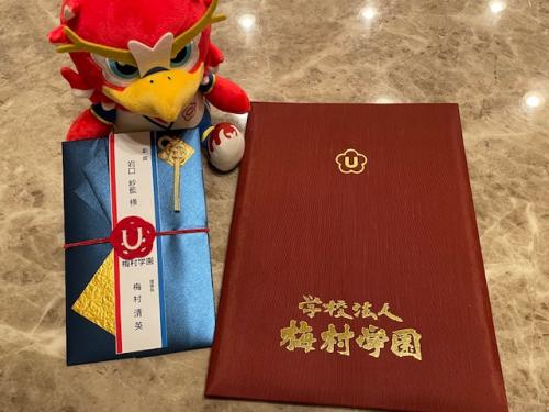 学校法人梅村学園 中京大学梅村理事長より表彰して頂き、